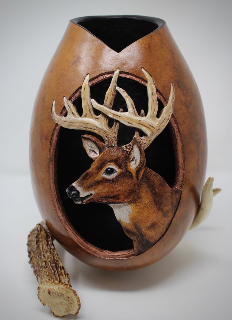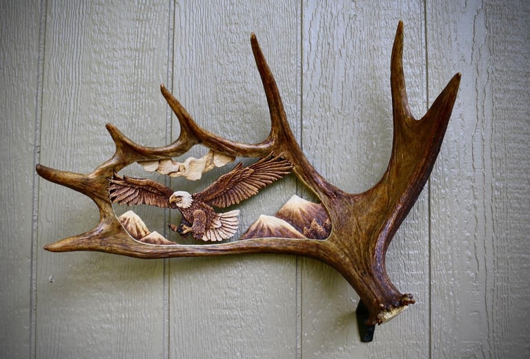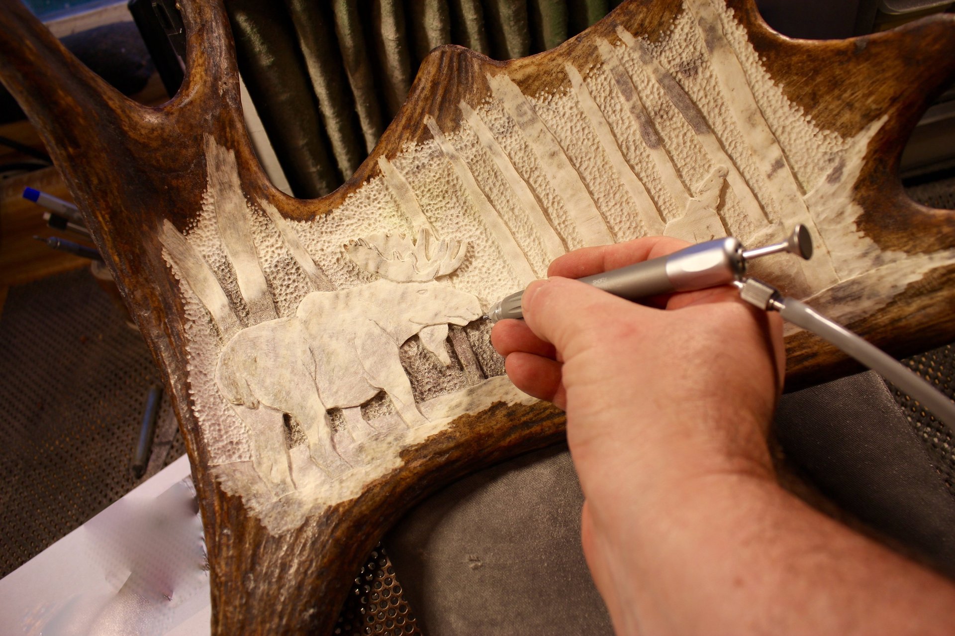 The high-pitched whine of a dental drill instills fear and anxiety in most people. However, this very sound inspires excitement and creativity in me. This is because my main carving tool is a dental drill. It spins at 300,000 RPM, making the process of carving on hardwood, eggshell, bone, or antler as effortless as writing with a pen.